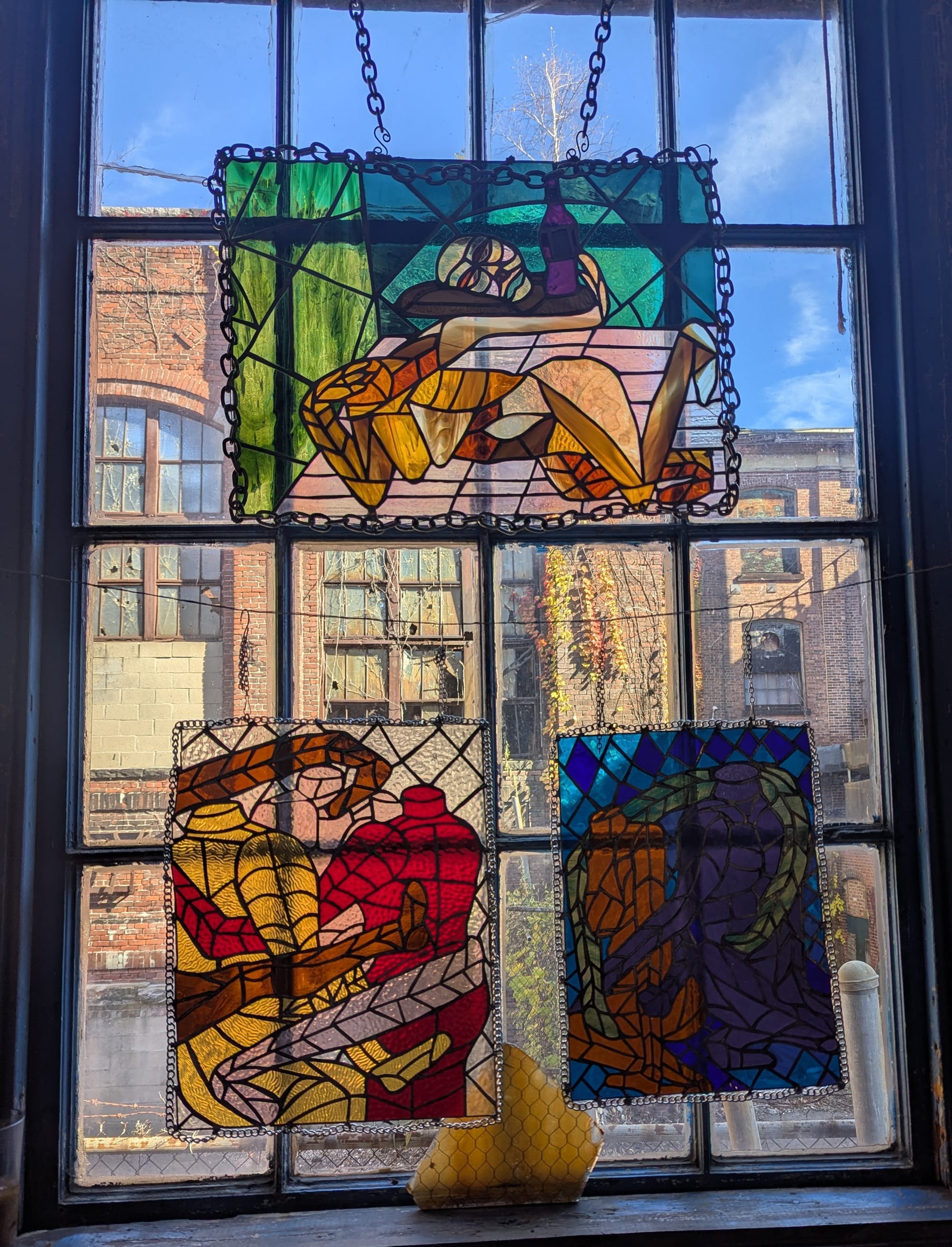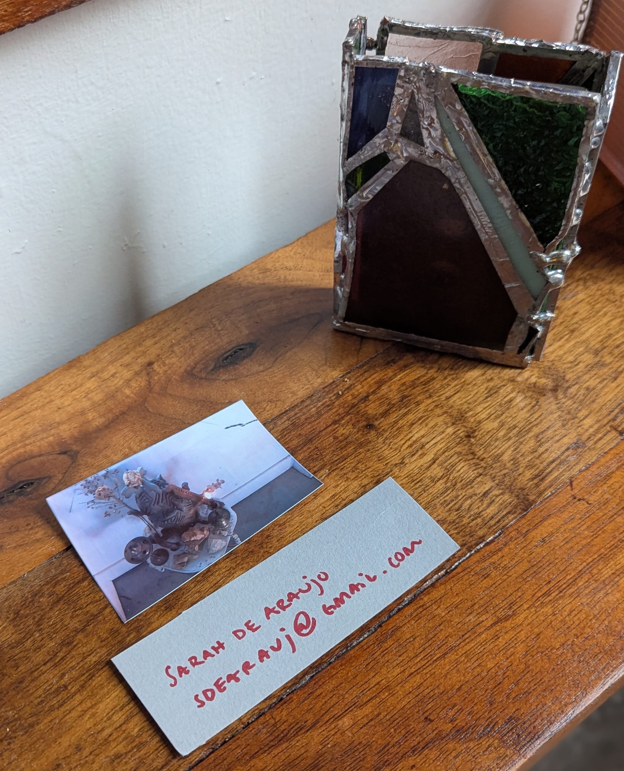 The speedshop had a really fun UK brunch this week with a local dj spinning a bunch of 90s UK electronic and ambient music I have no idea about, but made a great soundtrack to writing this issue and gave me an opportunity to check out the new exhibit "exhuming tessitura" by sara de araujo featuring incredible stained glass work and sculptures. Holy shit at the stained glass cassette case. Officially the best noise tape packaging Ive ever seen.