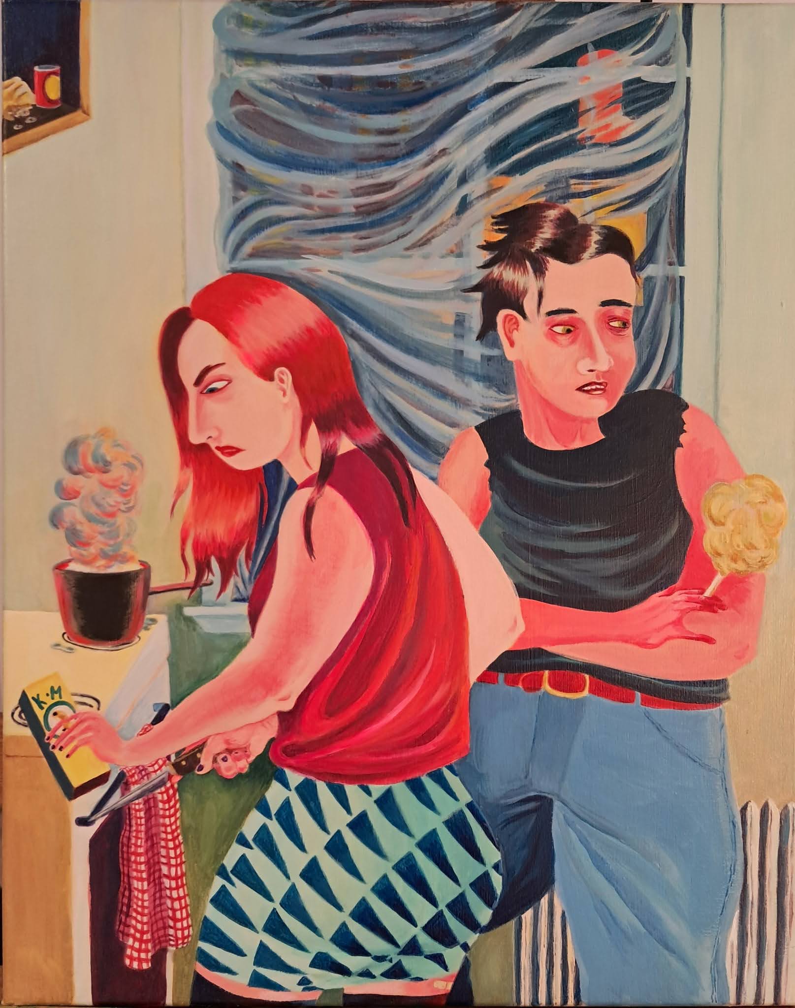 As the ocean crept closer and closer licking the walls with salt, both Elizabeth and her captor were pushed to madness. Two years passed inside the little room before Elizabeth began to despair. In an effort to fix her loneliness, she prayed to the USA lord for a friend to keep her company. The lord answered with another Elizabeth made from the first one like Eve from Adam’s rib. The pair survived with their captor for 7 more years until he died in front of them injecting a shit stupid and dangerous amount of bleached speed into his veins. The girls wandered the area looking for the little beach house, but the town had been flooded and abandoned. They were rounded up in a sweep of undocumented children and placed in a care home. Any attempts to tell their story were punished, and finally they were sent to the hospital and deemed unfit to work until further review, eventually they were bused away and dropped off exactly where they’d been taken so many years ago. It’s insanely rare that science, religion and a good story converge so precisely. The story had such symmetrical beauty that the government and the church stepped over themselves to verify every claim that came from the mouths of these two foundlings. Of course, like anything put under a microscope, the women’s story began to waver and fray at the edges. The longer you looked at them, the more you could spot the small differences between them. They weren’t identical, though incredibly similar, one of the Elizabeths had a small spray of freckles across her nose, the other had more lines around her eyes. Quietly, more blood tests were taken and the truth about the Elizabeths unfolded.
