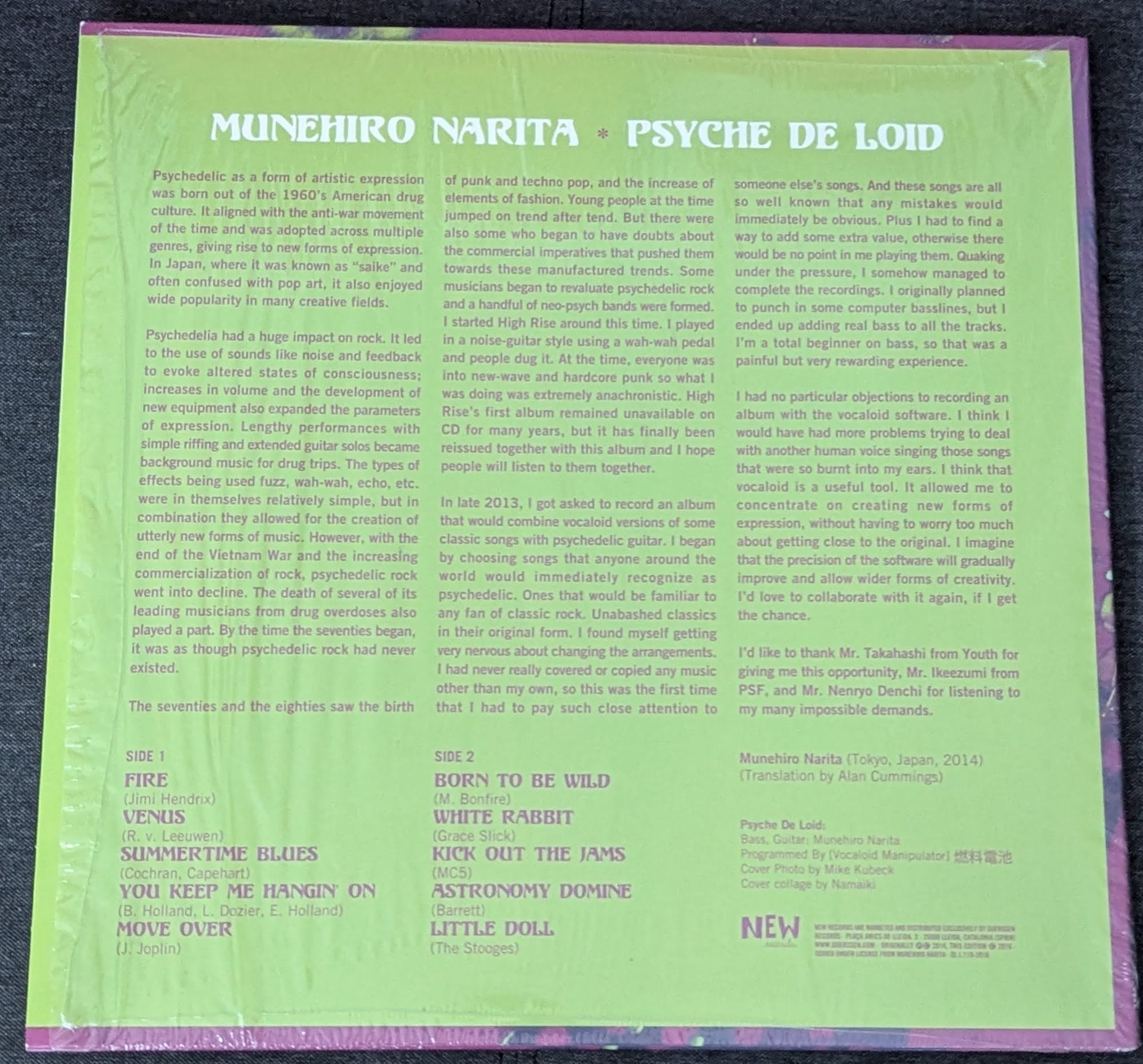 Up next is a solo album of psych rock covers called Psyche De Loid. For somewhat unclear reasons discussed in his liner notes, Munehiro Narita was asked to record an album of classic psych rock songs with vocaloid (computer software) simulated vocals. Bizarre choice, but even if the vocals take a little getting used to, when the motorcycle fuzztone starts ripping overtop in the stooges little doll, it doesnt matter. Good selection of covers too and shows some insight into his tastes at the time of starting High Rise.