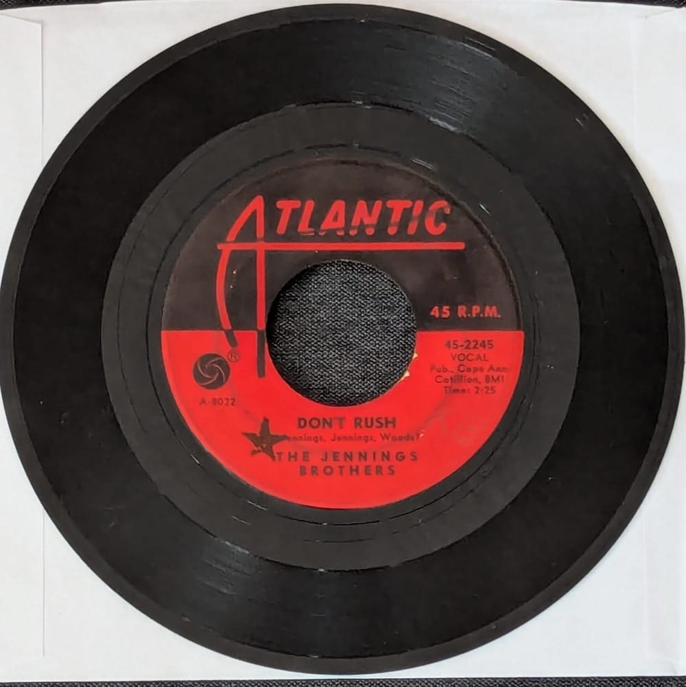 I don't know anything about the Jennings Brothers or their song Don't Rush other than this has been a set ending staple for pal DJ It's Casual and I never knew what it was. Thankfully he gifted me this very copy for the holidays, and now I want to share with you. What a goddamn good song