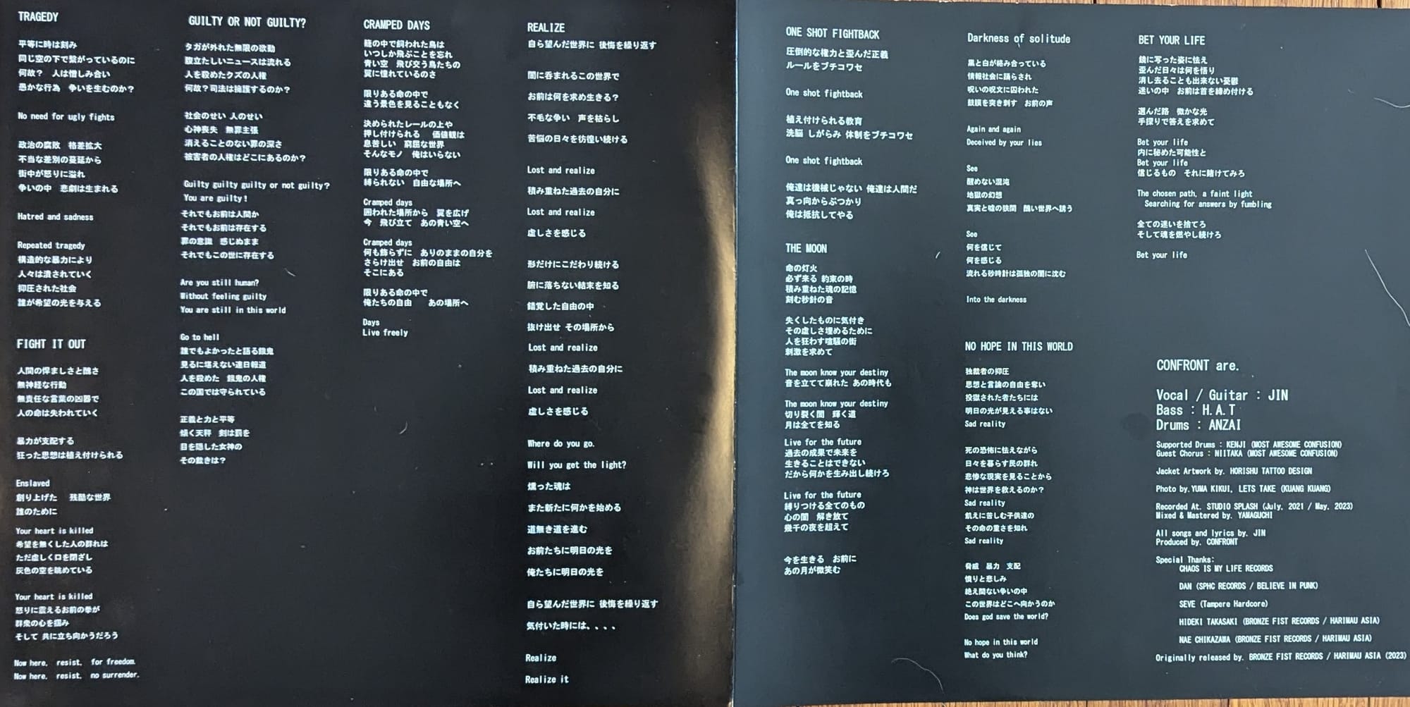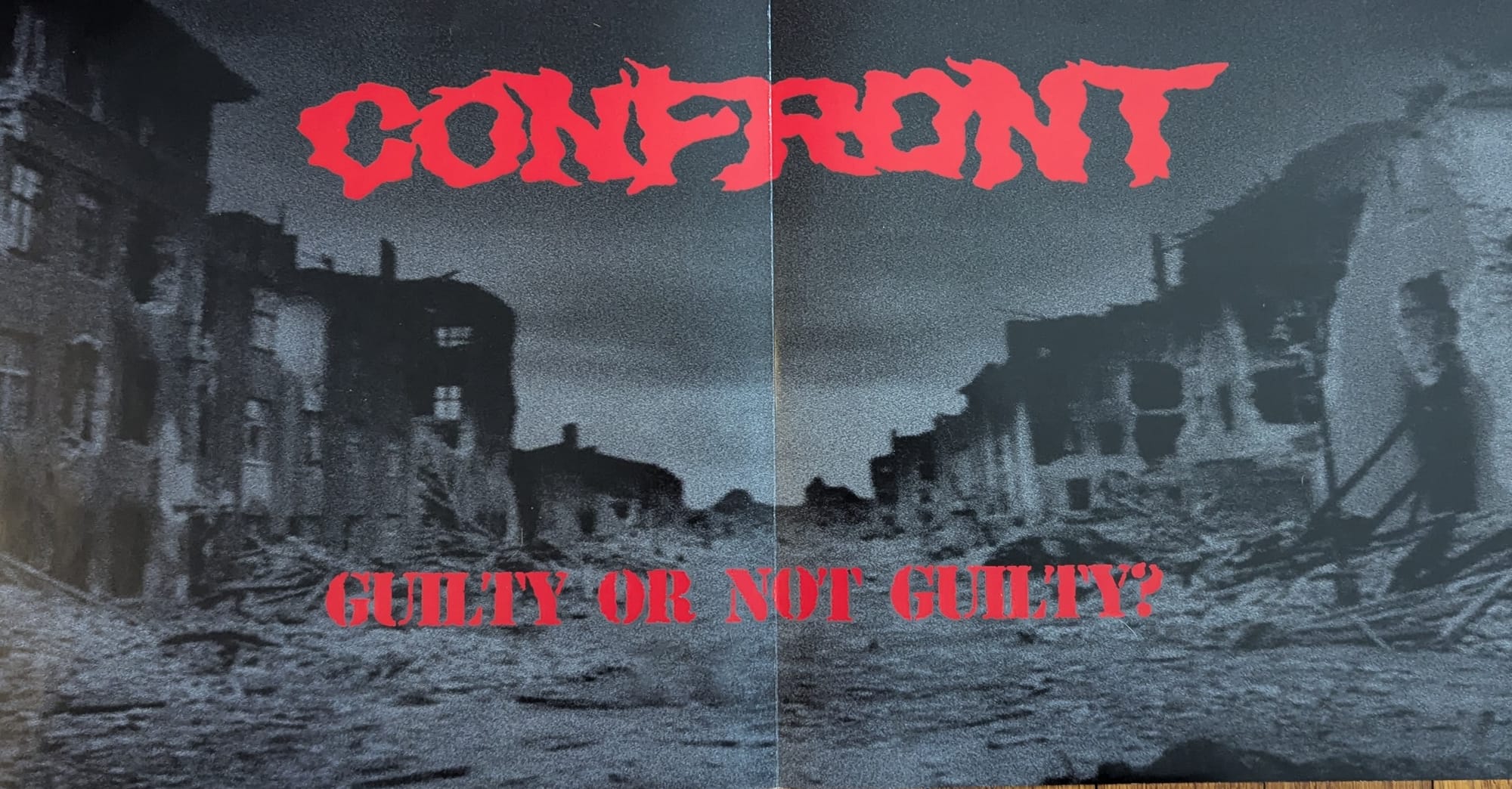 While putting together this week's issue, I was blasting a bunch of dbeat and crusty anti-war records including the Mie-City Hardcore 2 (Howling Noise Crusties From Gates of Hell) comp. on MCR Company, featuring Alive, Contrast Attitude and Deceiving Society. Sick comp, but I pulled it out because long-time Mie-City hardcore punks Confront put out a sick new LP called Guilty of Not Guilty that I can't keep off the turntable. Classic japanese hardcore sound with some of that local dbeat/crust flavor thrown in. Cool introspective lyrics on this one. Total ripper and keeping the spirit of Mie-City Hardcore alive!