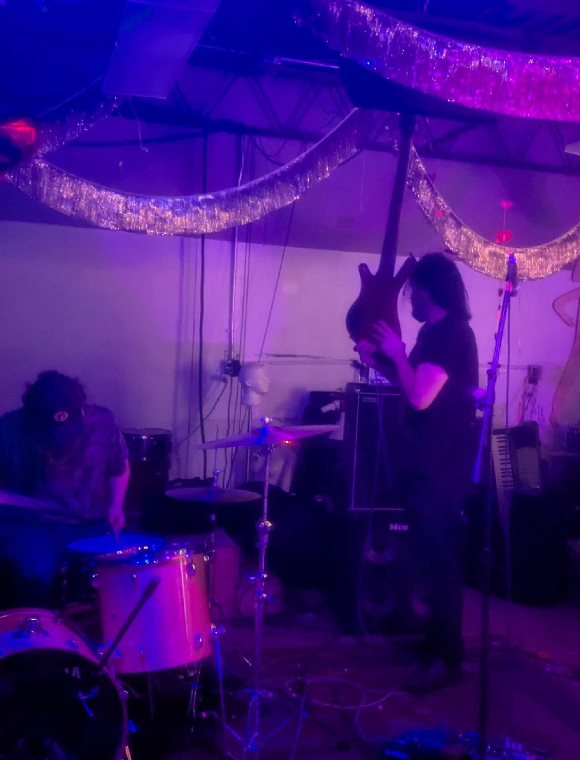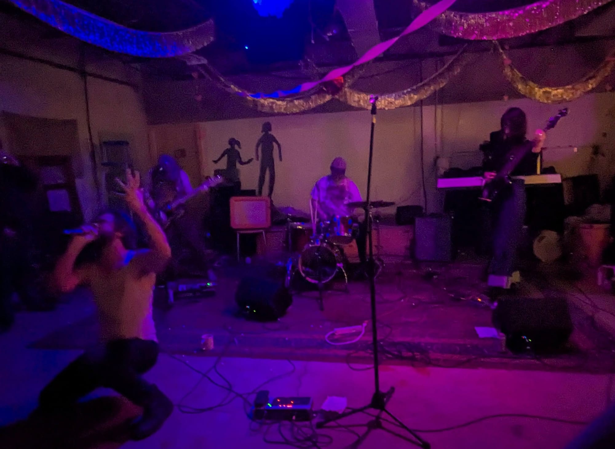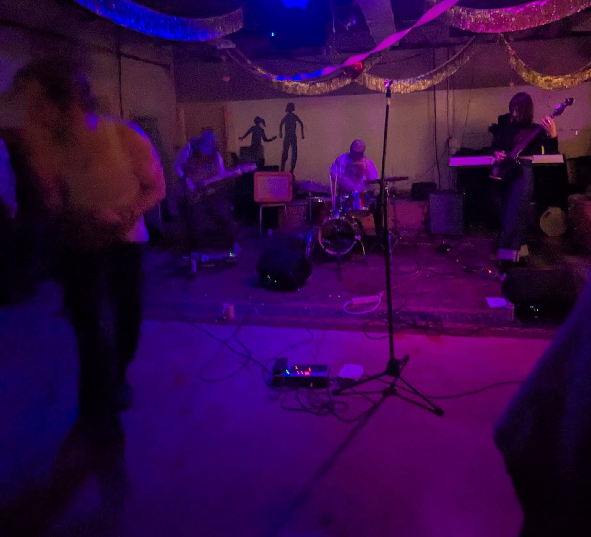 Local loud fast sludgy punk band A Monolithic Dome was playing, and my bandmate texted me that the The Playful Bunch was great and fronted by the Philly Rotisserie Chicken guy, so I had to come check it out. Me and Wasteland Chick usually listen to the Best Show on Tuesdays, so I missed a couple of bands and I think the lineup changed a little as well. I walked into Lost Bag and I caught the end of a band's set and missed their name (and they weren't on the flyer), and they were playing classic 77 twin guitar punk sounds, which was an unexpected surprise. I spent most of the set transfixed by the drummers glasses constantly looking like they were gonna fall off but hanging on by magic. Next up was Russian Tsarlag who played a quick set with a short film as the center. Always a good time.