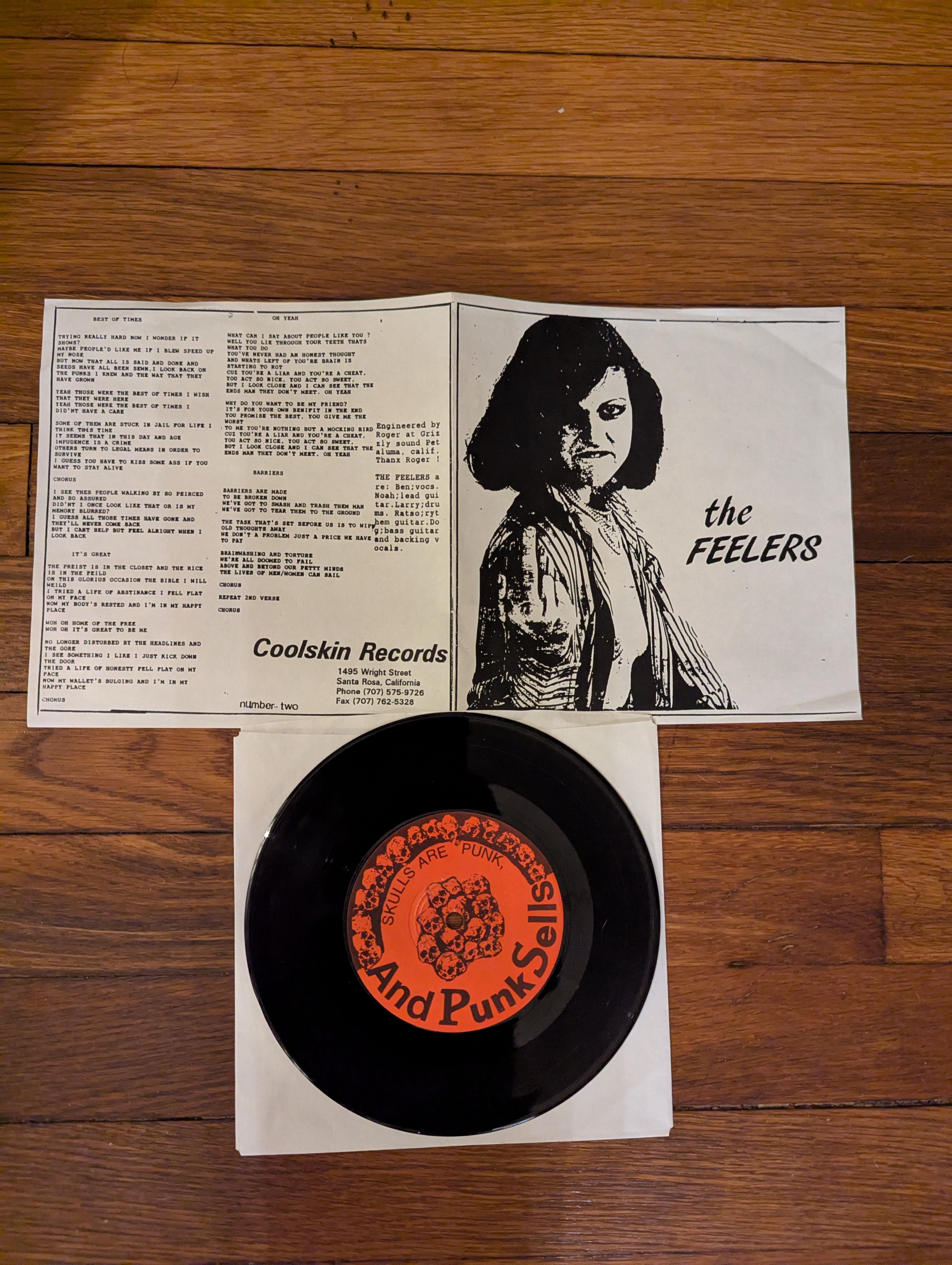 The Feelers (Ohio) were a trashy garage punk band from the early 2000’s who had a few cool records including the one up above, Fuhrer’s new miniskirt. I believe this was their first record and I could never locate a copy back when it came out. Well a few months ago I found it at a local record store along with another record by a band called the Feelers. Thought I found another early record I must have missed, but my hopes were dashed when I saw the California address and 90s recording date. Then I pulled the record out of the sleeve and saw the inner label, skulls are punk and punk sells, so both of them came home with me. The Feelers (OH) is exactly what I remembered, trashy juvenile garage punk, with a great blown out recording. The California band is more melodic Clash style punk with some surprisingly fancy guitar work and lyrics about drug addiction and committing crime. Punk! Record collecting is my favorite unimportant thing.