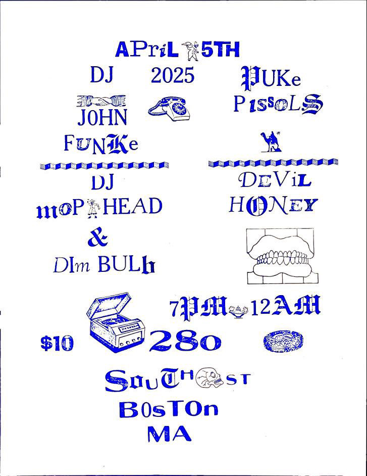 My friends and I drove back to Boston while the sun was rising, getting back to my apartment, Bloodstains Across Somerville, with enough time for a power nap before a very hungover shift at the erotic bakery I worked at downtown. That night I went out and got drunk, possibly at a show at the HOSS but more likely at 80s night at Man Ray. I got home after last call and found my roommates and some friends hanging out in the kitchen. I cracked a beer, lit a smoke, and plopped down on the sofa, slipping comfortably into one of the conversations going on. At a certain point the party moved outside and eventually into a minivan and ultimately to Philadelphia for the third D.S.B. show.