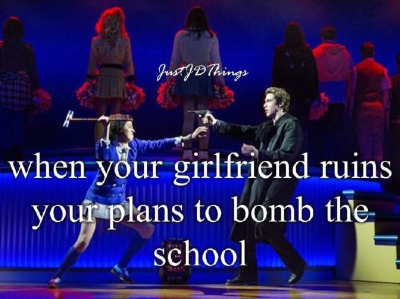 Kids, be sure to stay in a non-exploded school and don’t do drain cleaner. Salutations, fellow Wasteland Chicks. Welcome back to another episode of “I can’t stop referencing Heathers”. Anyway, today we’ll be tackling with a ten-pound metal door the Heathers: The Musical, J.D.-heavy song “Meant to Be Yours”, which is, for those who haven’t seen the musical, the scene where J.D. wants Veronica to blow up Westerburg High and she fake hangs herself. I knew that loose was too noose! Anyway, let’s start with the rhythm and melody, which I give a 9 out of ten! The pacing is an incredible mix of a classical manipulative love tune and a high-steppin’ action number, which feels a bit jarring until you realize that it’s definitely on purpose! The jarring changes are much like J.D. himself as a character; sweet and soft one minute, but once he goes deeper into psychopath mode, he becomes angry and forcing. Just-just Wow! Moving along, on the other hand, I give the lyrics a 10 out of ten! First of all, I love the progression of J.D. singing about his nefarious plan into random bursts of a “sweet” love song, which really shows how desperate he is to convince Veronica to help. I also love the random “pew pew pew”’s J.D. does when he’s describing the school blowing up. Like- bro’s describing insane psychopath plans and then just- pew pew pew 😀! I also just love the way he sings “And so I built a bomb!” Like, he sings it in a way where it just sounds like an excited scream of “I built a bomb :D!” Finally, I love the almost addictive nature of the lyrics, they’re pretty perfect to just listen to on loop for hours! Overall review time!: I give this song a 10 out of ten, the rhythm and melody are spooky and ballodic, the lyrics are delicious and terrifying, and it has a great balance of humor and fear. Don’t forget that the dinosaurs will turn to dust, fellow Wasteland Chicks. See ya!